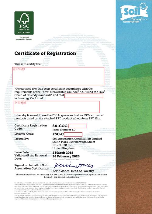 Kiwa BCC已經(jīng)獲得英國土壤協(xié)會SA授權(quán),可在中國開展FSC®產(chǎn)銷監(jiān)管鏈認(rèn)證(FSC® N001893)和PEFC產(chǎn)銷監(jiān)管鏈認(rèn)證。同時,可為組織提供CFCC產(chǎn)銷監(jiān)管鏈認(rèn)證服務(wù)。