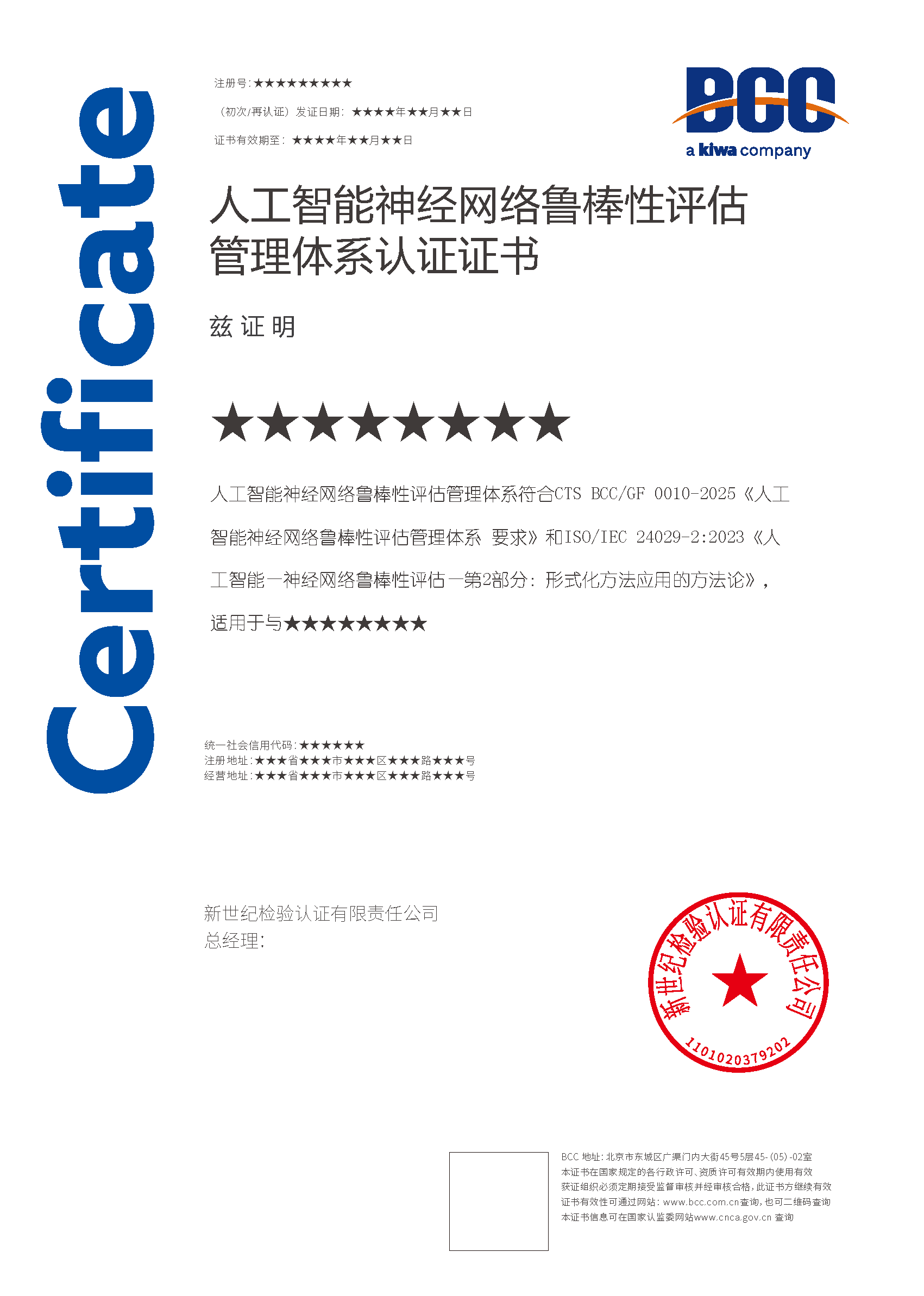 本頁涉及的認證服務(wù)中均有對應(yīng)的《認證實施規(guī)則》,BCC擁有其最終解釋權(quán)。任何組織及個人未經(jīng)BCC許可,不得以任何形式全部或部分使用(法律要求除外)認證相關(guān)信息。如需獲取相關(guān)實施規(guī)則請用以下方式聯(lián)系獲?。弘娫挘?10-58579316 郵箱:fwjs@kiwa.cn