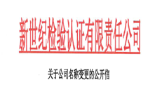 根據(jù)公司戰(zhàn)略發(fā)展的需要,經(jīng)市場監(jiān)督管理局核準(zhǔn),自2019年10月22日起,公司名稱由“新世紀(jì)檢驗(yàn)認(rèn)證股份有限公司”正式變更為“新世紀(jì)檢驗(yàn)認(rèn)證有限責(zé)任公司”。閱讀更多 -