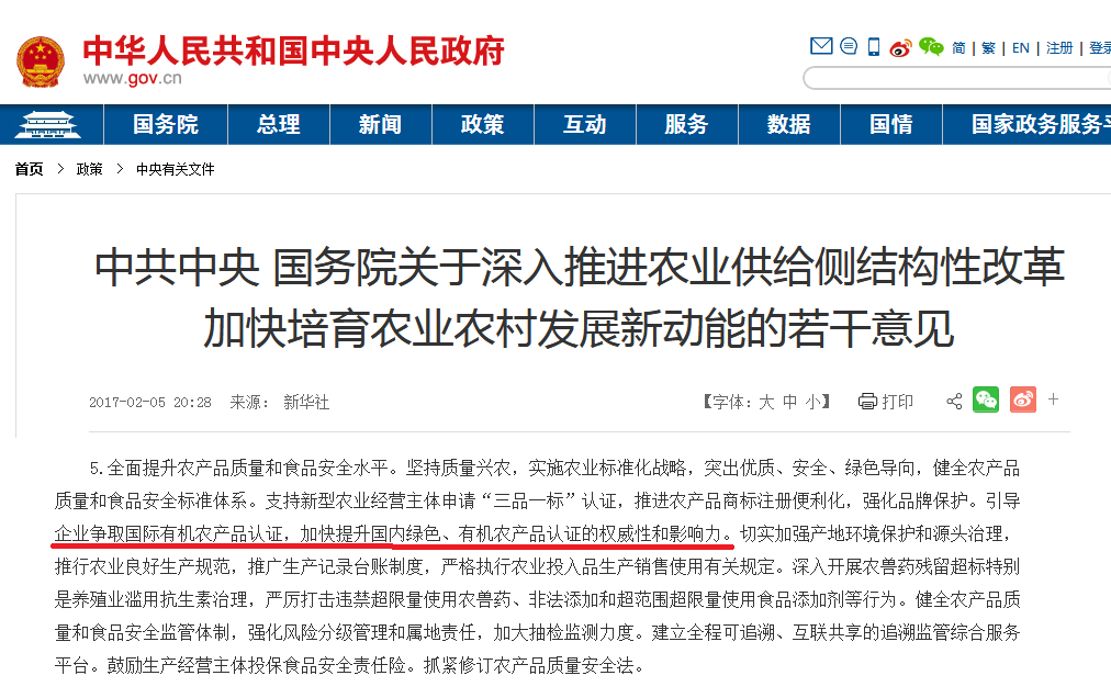 意見指出,“引導(dǎo)企業(yè)爭(zhēng)取國際有機(jī)農(nóng)產(chǎn)品認(rèn)證,加快提升國內(nèi)綠色、有機(jī)農(nóng)產(chǎn)品認(rèn)證的權(quán)威性和影響力。”