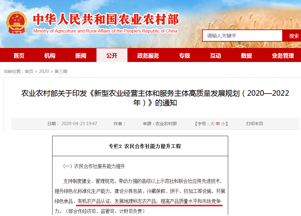 其中意見描述:“引導(dǎo)小農(nóng)戶發(fā)展高品質(zhì)農(nóng)業(yè)、綠色生態(tài)農(nóng)業(yè),開展標(biāo)準(zhǔn)化生產(chǎn)、專業(yè)化經(jīng)營,推進(jìn)種養(yǎng)循環(huán)、農(nóng)牧結(jié)合,生產(chǎn)高附加值農(nóng)產(chǎn)品。實(shí)施小農(nóng)戶發(fā)展有機(jī)農(nóng)業(yè)計(jì)劃。”