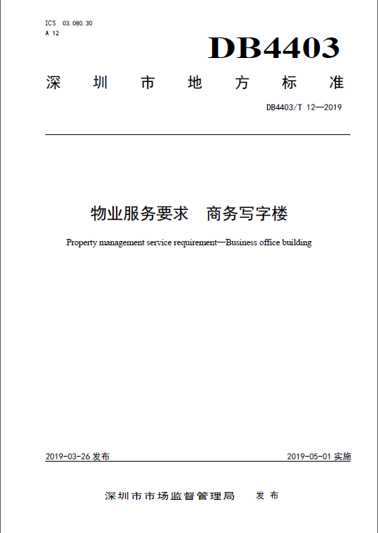 深圳市市場監(jiān)管局自2016年開始籌備物業(yè)服務認證工作,歷經(jīng)三年多,在深圳標準認證聯(lián)盟和標準技術研究院的大力支持下,中航物業(yè)和SGS通標標準技術服務有限公司經(jīng)過行業(yè)走訪調(diào)研、專業(yè)論證、條款編寫、標準評審,終于在2019年5月1日聯(lián)合發(fā)布了首個服務類深圳認證標準DB 4403/T 12—2019《物業(yè)服務要求 商務寫字樓》,標準引入了先進的服務接觸理論和服務質(zhì)量評價模型,從客戶感知和企業(yè)自身管理兩個角度提出服務要求和管理要求,結合深圳市商務寫字樓的先進技術和先進方法,具有較強的科學性和適用性,達到了國內(nèi)領先、國際一流水平。認證按照深圳標準認證聯(lián)盟發(fā)布的首個服務認證實施規(guī)則實施。