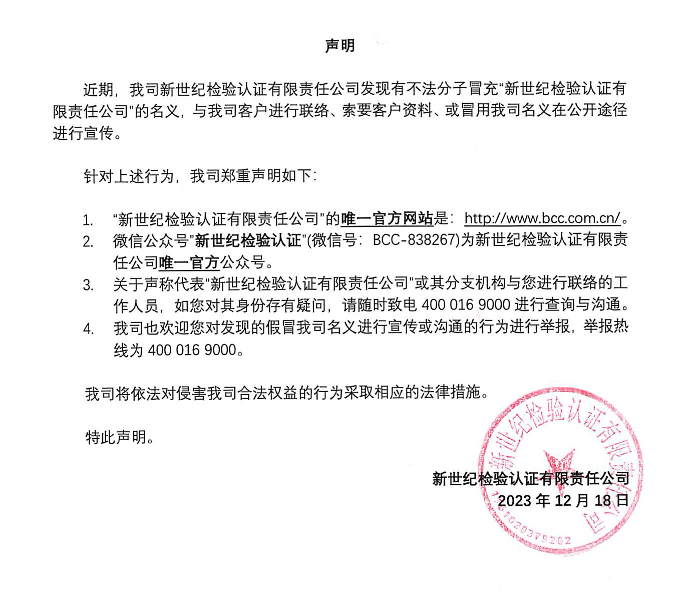 你好,歡迎訪問新世紀檢驗認證官網(wǎng)!因為專業(yè),所以信賴!